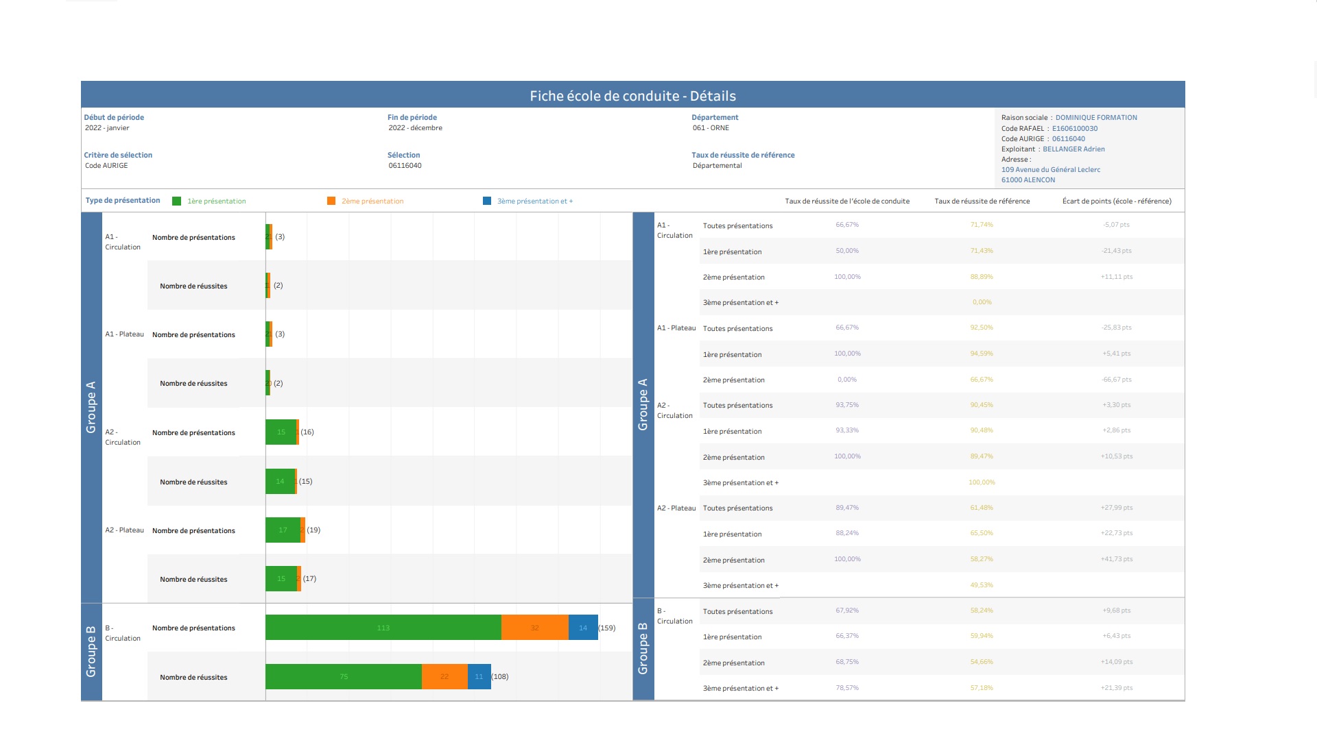 Résultats de l'auto-école pour l'année 2022